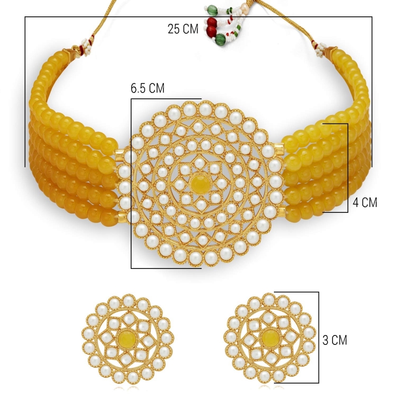 Adorable Gold Plated Pearl Choker Necklace Set for Women