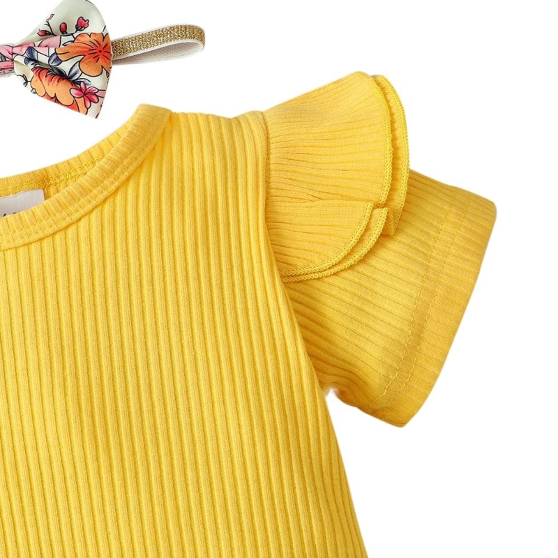 الحجلة بنات القطن طباعة الأزهار Onesie وتنورة مجموعة مع عقال في اللون الأصفر