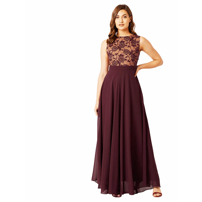 ملكة جمال تشيس المرأة الخزامى جولة الرقبة بلا أكمام الصلبة الدانتيل تراكب فستان ماكسي