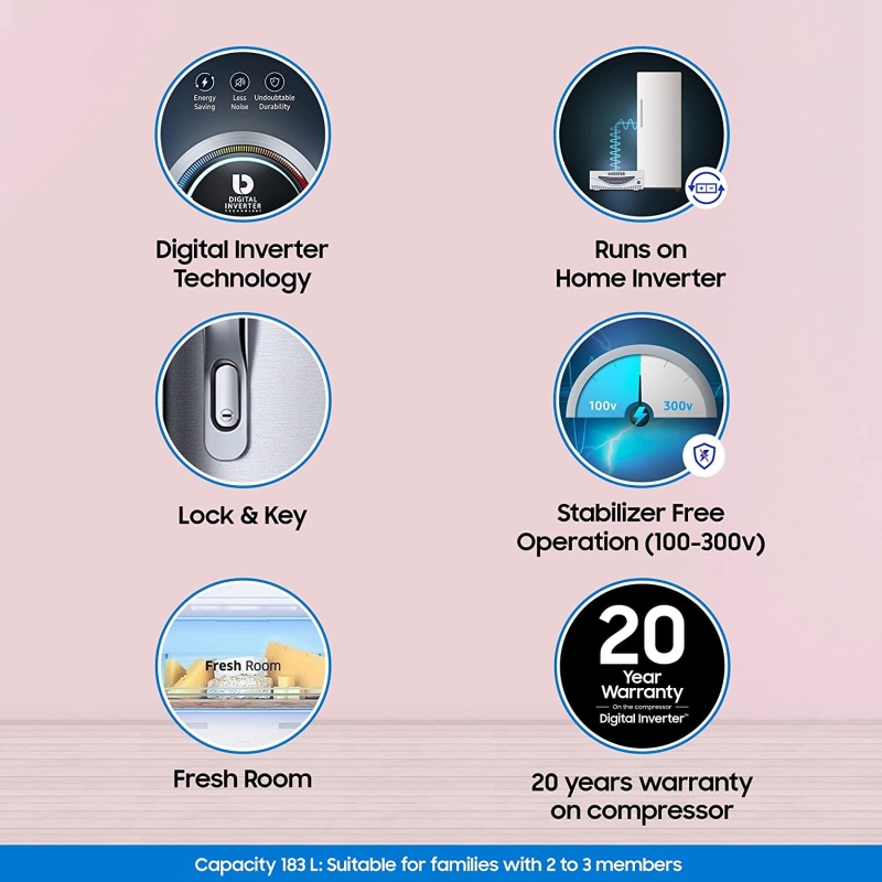 سامسونج ثلاجة 183 لتر 3 نجوم ديجيتال انفرتر دايركت بارد باب واحد