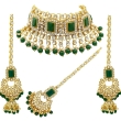• Womens Gold Plated Alloy Jewellery Set - Green; Contains : 1 Necklace + 1 Pair of Earring + 1 Maang Tikka