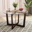 With its exclusive pattern and striking design, our Wilfred Mozza 4-seater dining set is a one-of-a-kind addition to any dining room. This dining table is a sleek round table with a base mirror and a set of four seats. The chair's color definitely elevates and adds bright color to the space, and it also happens to be incredibly comfortable. This dining table set is one of the best examples of our commitment to providing designs with a creative flair; we promise. Buy this table right away to give your home some flair and comfort.