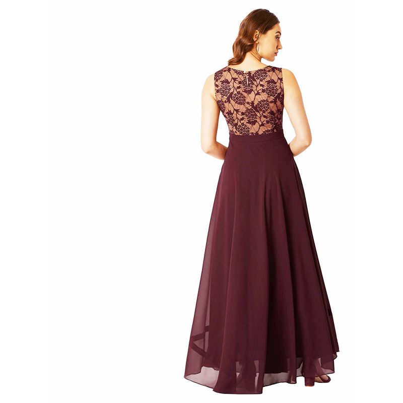 ملكة جمال تشيس المرأة الخزامى جولة الرقبة بلا أكمام الصلبة الدانتيل تراكب فستان ماكسي